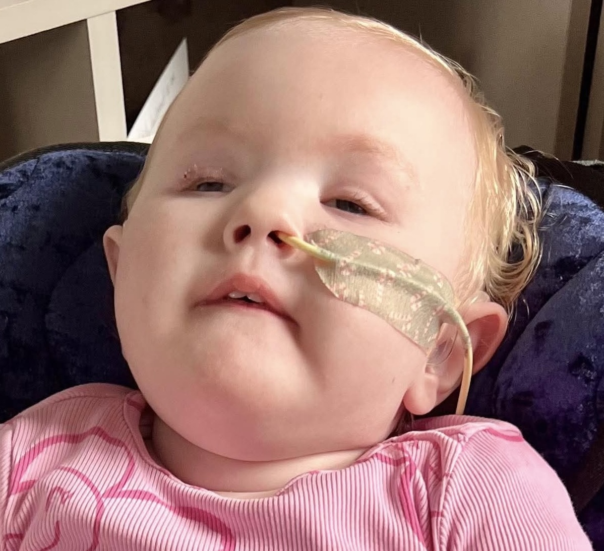 Our beautiful daughter Lottie is nearly one years of age from Whitehead in Northern Ireland. She was born with an incredibly rare genetic condition caused by a TUBA1A mutation. This affects how her brain developed, resulting in multiple severe diagnoses including Lissencephaly Type 3, agenesis of the corpus callosum, microcephaly, ventriculomegaly, and cerebellar hypoplasia. She is profoundly deaf, blind due to bilateral optic nerve hypoplasia, and faces daily challenges including epilepsy, dystonia, adrenal suppression, vocal cord palsy, and severe reflux disease.